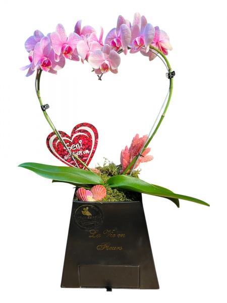 Zarif kalp formunda tasarlanmış bu çift dallı pembe orkide, aşkın ve zarafetin en şık halini yansıtır. Özel tasarımıyla sevdiklerinize duyduğunuz sevgiyi ifade etmenin en estetik yolu. Uzun ömürlü çiçekleriyle yaşam alanlarına romantik bir dokunuş katın.